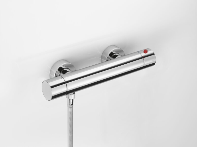 Für den Schutz vor Verbrühungen sind Armaturen mit Temperaturbegrenzung oder Thermostatfunktionen Pflicht. HEWI bietet beispielsweise das SAFE TOUCH Brausethermostat, dessen Gehäuse sich auch bei hohen Wassertemperaturen nicht erhitzt – ein Pluspunkt für Sicherheit und Komfort in Mehrgenerationen- und Pflegebädern.