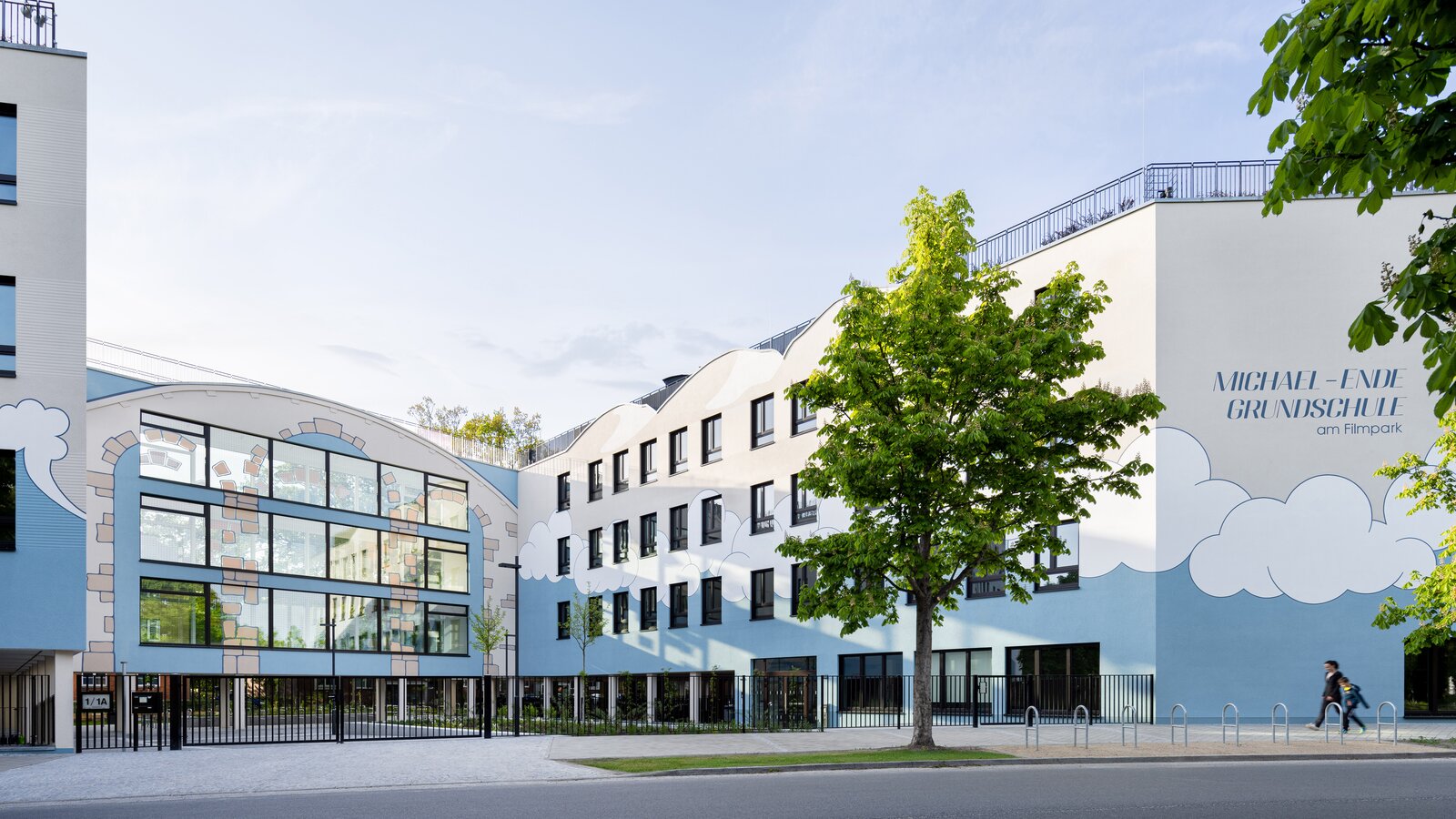Die Michael-Ende-Grundschule mit angeschlossenem Hort macht ihrem besonderen Standort alle Ehre. Auf dem Gelände neben dem ehemaligen Filmparks Babelsberg empfängt sie SchülerInnen und PädagogInnen mit fassadenfüllenden Motiven aus Michael Endes „Jim Knopf und Lukas der Lokomotivführer“ und „Die unendliche Geschichte“.