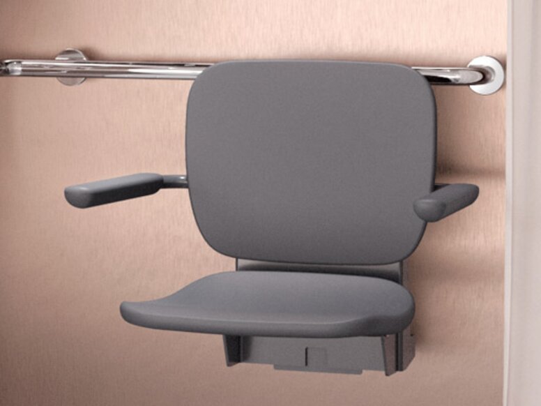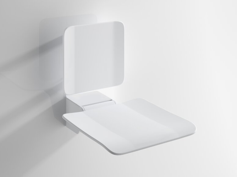 Grâce au siège mobile, l'équipement de douche peut être conçu de manière flexible. Le siège de douche mobile est simplement encliqueté dans la plaque de montage installée de façon permanente lorsque cela est nécessaire.