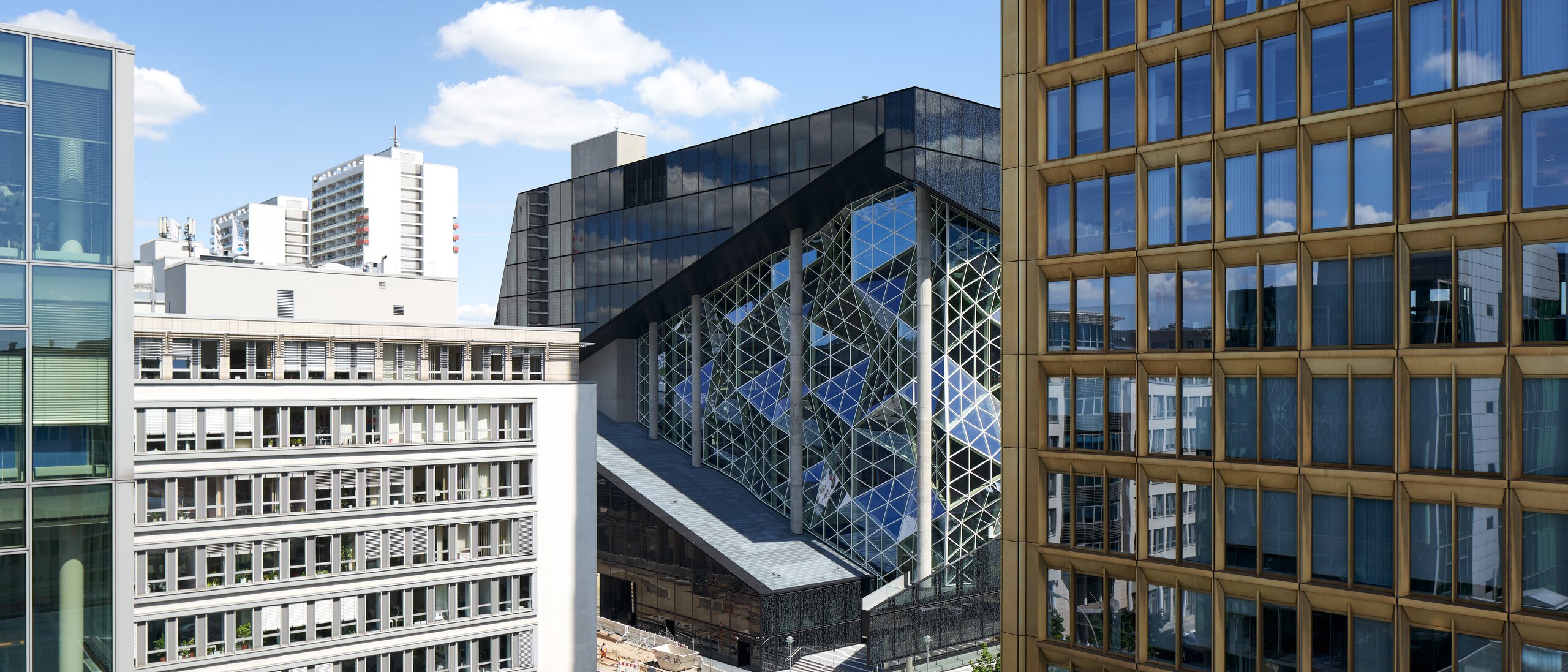 Het gebouw is gebouwd op de plek waar ooit de Muur Berlijn in tweeën deelde en staat nu symbool voor de antwoorden op de uitdagingen van nu en in de toekomst.